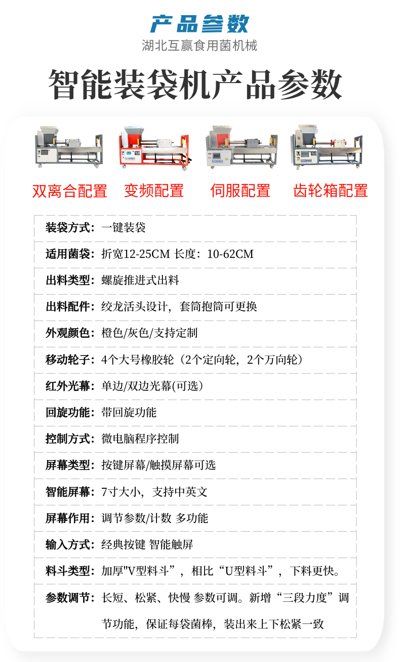 近年來代料香菇裝袋機(jī)的發(fā)展,越來越迅猛。其規(guī)模不斷擴(kuò)大,品種不斷增多,地域限制越來越少。是農(nóng)民增收的可靠保障,也是地方政府的經(jīng)濟(jì)支柱。自動套袋食用菌裝袋機(jī)廣泛用在香菇、木耳、平菇、金針菇、茯苓、灰樹花、姬菇、秀珍菇等食用菌種植領(lǐng)域。是工廠、基地、合作社、家庭農(nóng)場理想的工廠化生產(chǎn)機(jī)械。生產(chǎn)規(guī)模的大小可根據(jù)資金、銷售量、經(jīng)營方式、技術(shù)力量、資源條件等綜合因素來確定,可用單機(jī),也可組合設(shè)計(jì)成半機(jī)械化...