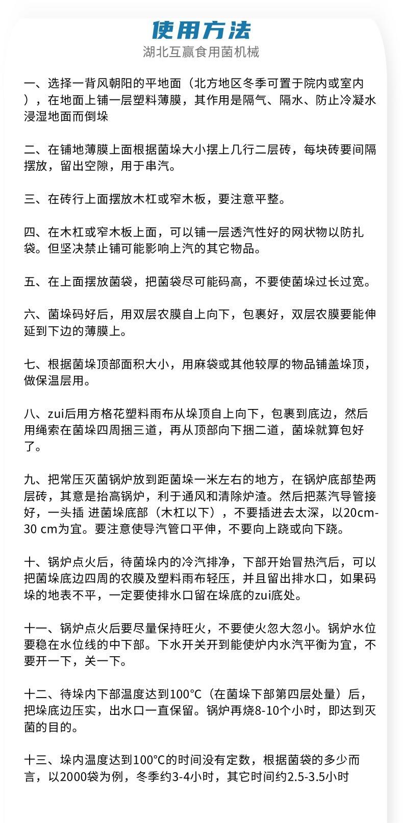 在生產(chǎn)食用菌過(guò)程中哪一個(gè)環(huán)節(jié)都非常重要,可想而知是滅菌環(huán)節(jié)則是重中之重,食用菌常壓滅菌爐選擇和使用不好,就有可能全軍覆滅。滅菌不徹底雜菌叢生。滅菌的原則和過(guò)程相信搞過(guò)食用菌生產(chǎn)種植的朋友們也都明白,下面就簡(jiǎn)單的說(shuō)一下食用菌常壓滅菌爐要注意的幾個(gè)環(huán)節(jié)供大家參考: 1、根據(jù)滅菌量決定放氣孔的大小和多少。5千袋的菌鍋可以留兩個(gè)1.5寸排氣孔,依此類推。排氣孔的位置z下層菌筐的下面。 2、簡(jiǎn)易鍋、土蒸鍋、...
